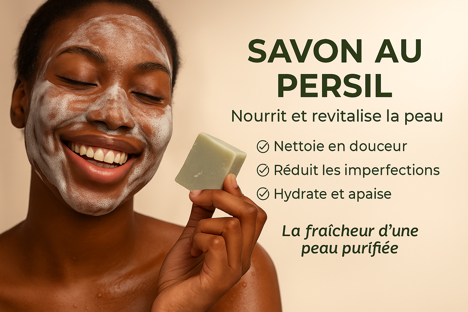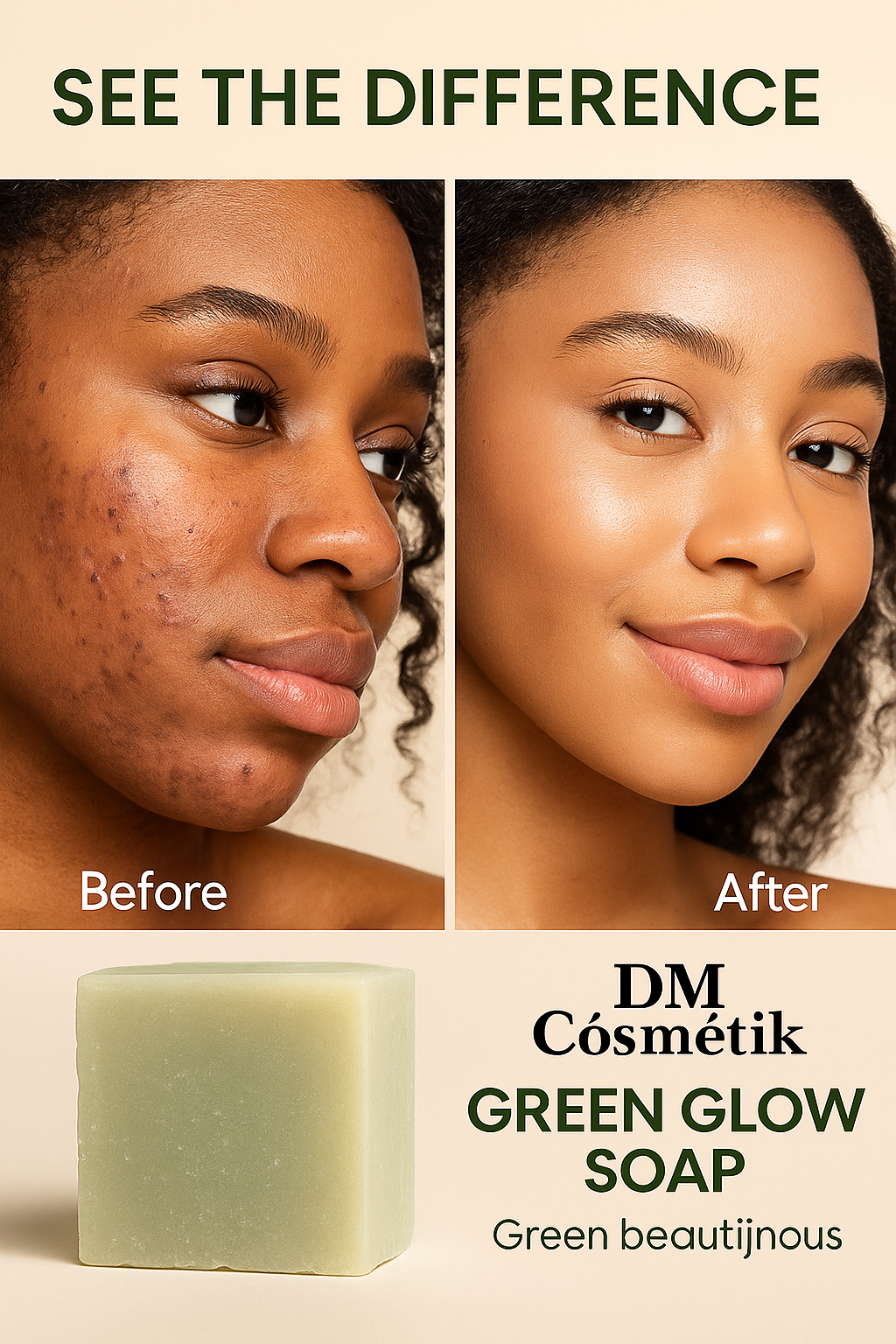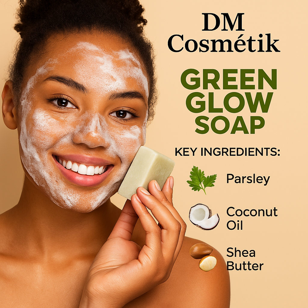 Découvrez le Green Glow Soap de DM Cosmétik, un soin nettoyant naturel formulé à base d’huile de jojoba et d’extrait de persil, deux ingrédients puissants reconnus pour leurs vertus purifiantes, réparatrices et illuminatrices.