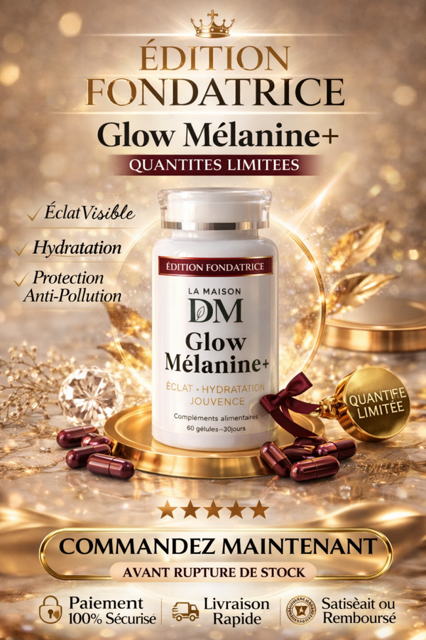 Glow Mélanine+ est un complément alimentaire haut de gamme, formulé pour sublimer la peau de l’intérieur, révéler l’éclat naturel du teint, soutenir l’hydratation cutanée et préserver la jeunesse de la peau.